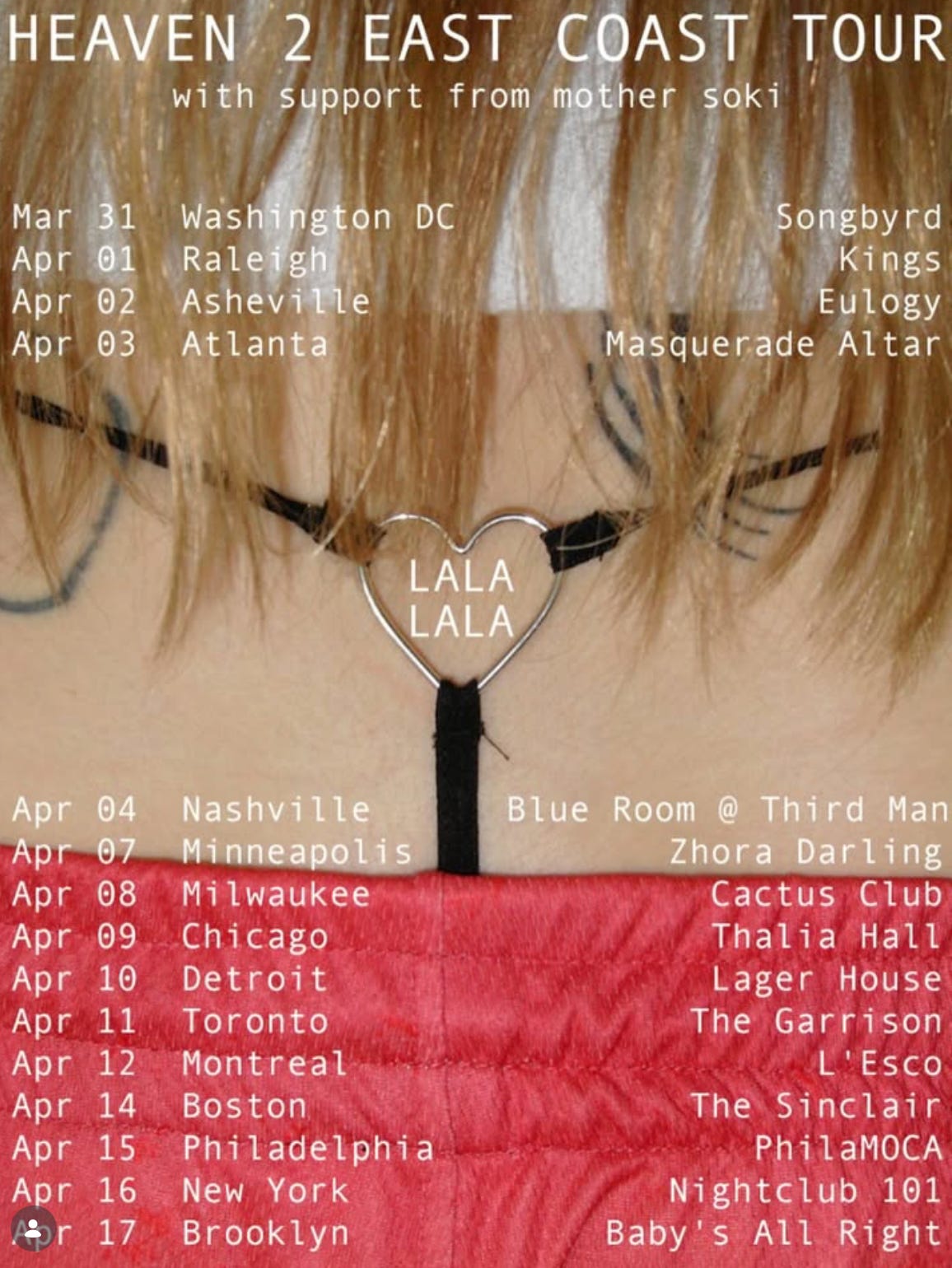 Finally I would like to remind you of the imminent Heaven 2 tour. It’s been so long since we were out there. Please come, I would love to sing for you. I am excited about the openers - both of them make really beautiful music - lots of hands are also from England, like me, which is thrilling. Mother Soki I think is American but that’s cool too and maybe she will start doing the accent from being around me. You can buy tickets here. Yes I know there’s a little tag thing on the east coast tour image because I screenshot it from instagram. Cut me some slack here